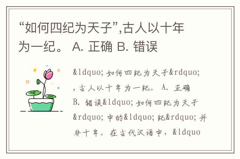 “如何四纪为天子”,古人以十年为一纪。 A. 正确 B. 错误