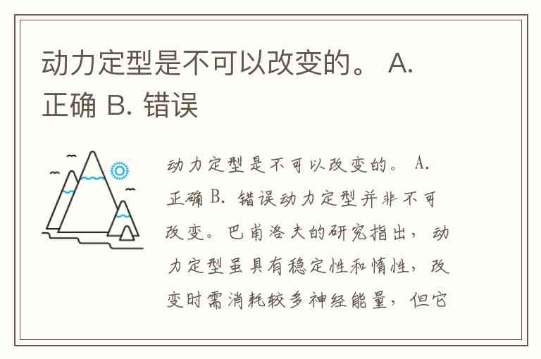 动力定型是不可以改变的。 A. 正确 B. 错误
