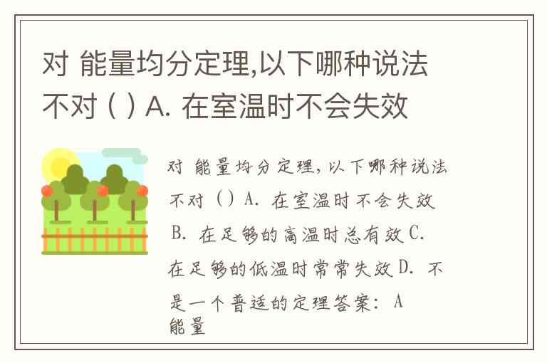 对 能量均分定理,以下哪种说法不对 ( ) A. 在室温时不会失效 B. 在足够的高温时总有效 C. 在足够的低温时常常失效 D. 不是一个普适的定理