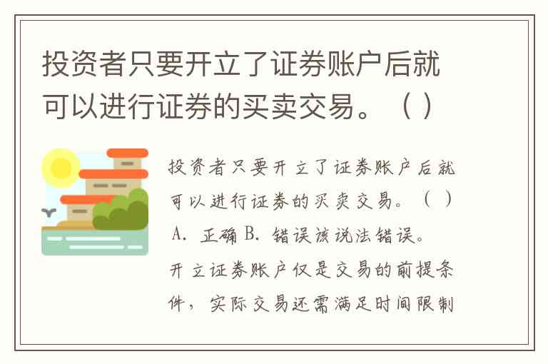 投资者只要开立了证券账户后就可以进行证券的买卖交易。( ) A. 正确 B. 错误