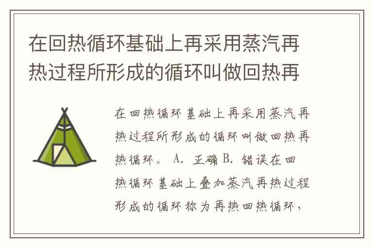 在回热循环基础上再采用蒸汽再热过程所形成的循环叫做回热再热循环。 A. 正确 B. 错误