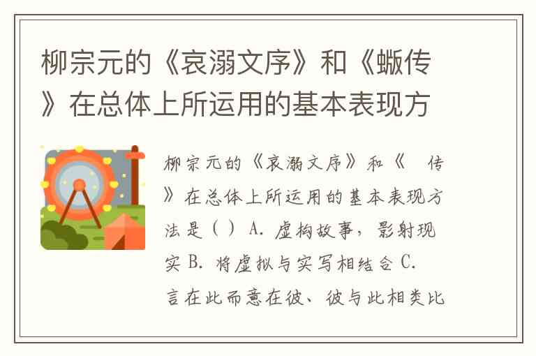 柳宗元的《哀溺文序》和《蝂传》在总体上所运用的基本表现方法是() A. 虚构故事,影射现实 B. 将虚拟与实写相结合 C. 言在此而意在彼、彼与此相类比 D. 比喻与象征