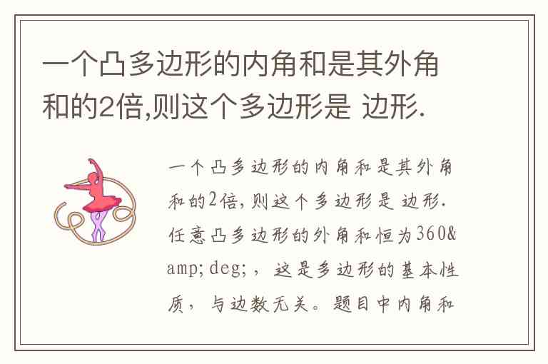 一个凸多边形的内角和是其外角和的2倍,则这个多边形是 边形.