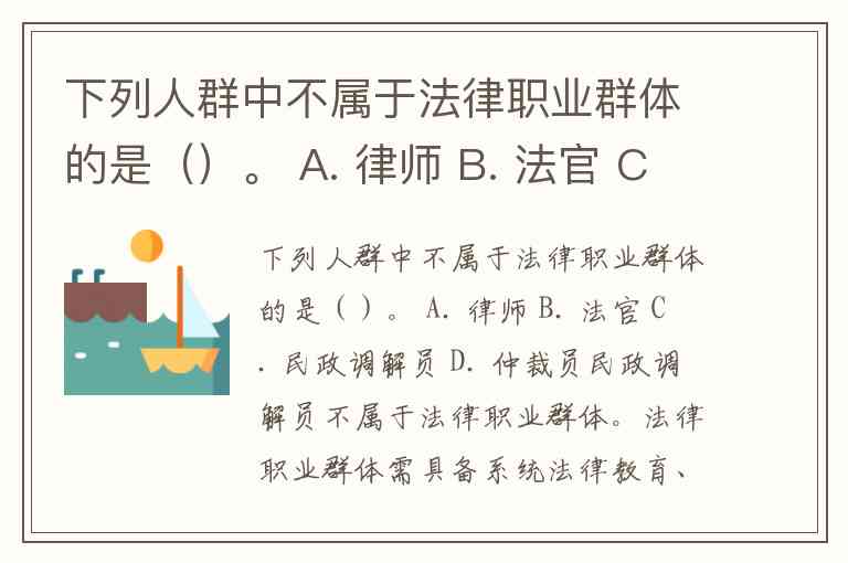 下列人群中不属于法律职业群体的是()。 A. 律师 B. 法官 C. 民政调解员 D. 仲裁员