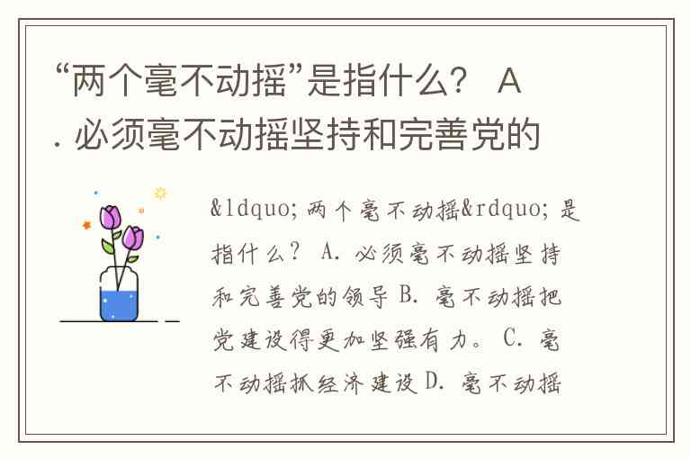 需要注意的是,您提供的选项(A至D)均未准确反映“两个毫不动摇”的内容。正确表述应围绕公有制经济与非公有制经济的发展方针展开,这一制度安排既是改革开放以来中国经济快速发展的“密码”,也是未来实现高质量发展的重要保障。