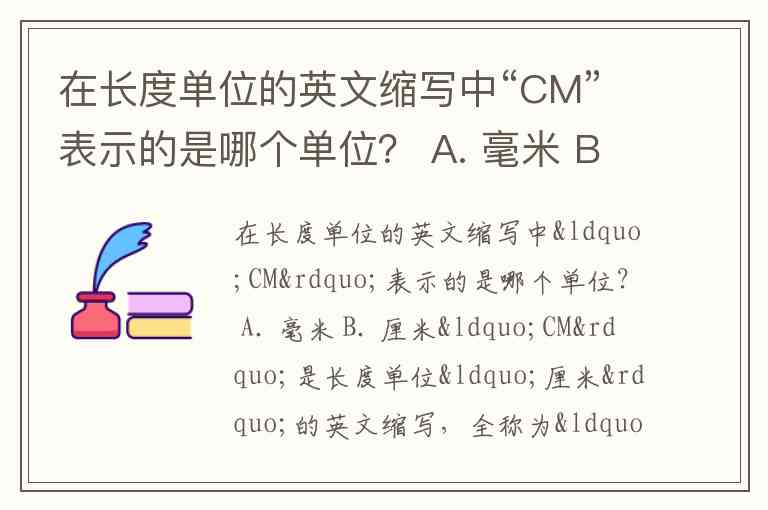 在长度单位的英文缩写中“CM”表示的是哪个单位? A. 毫米 B. 厘米