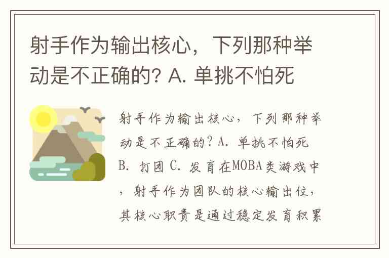 射手作为输出核心,下列那种举动是不正确的? A. 单挑不怕死 B. 打团 C. 发育