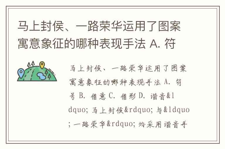 马上封侯、一路荣华运用了图案寓意象征的哪种表现手法 A. 符号 B. 借意 C. 借形 D. 谐音