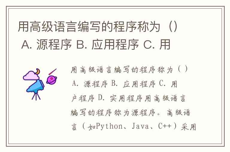 用高级语言编写的程序称为() A. 源程序 B. 应用程序 C. 用户程序 D. 实用程序