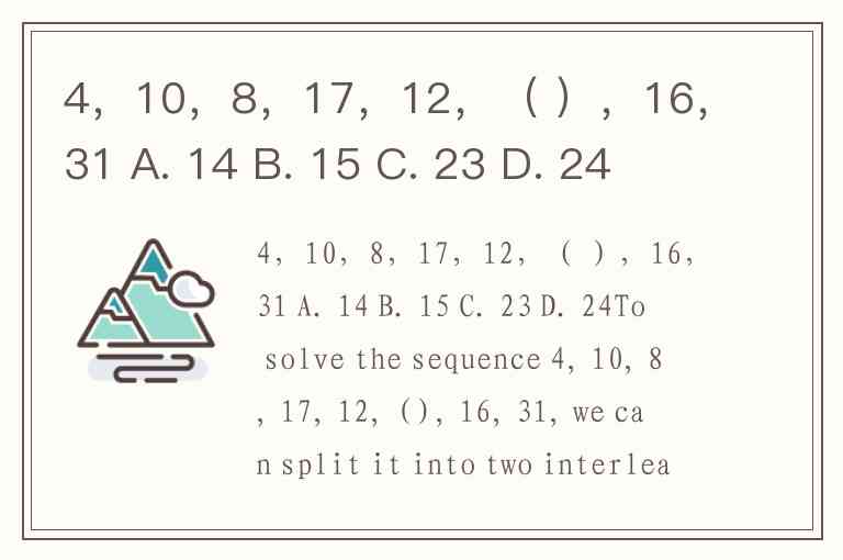 4,10,8,17,12,( ),16,31 A. 14 B. 15 C. 23 D. 24