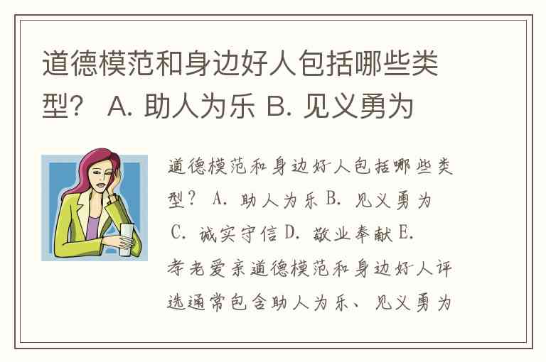 道德模范和身边好人包括哪些类型? A. 助人为乐 B. 见义勇为 C. 诚实守信 D. 敬业奉献 E. 孝老爱亲