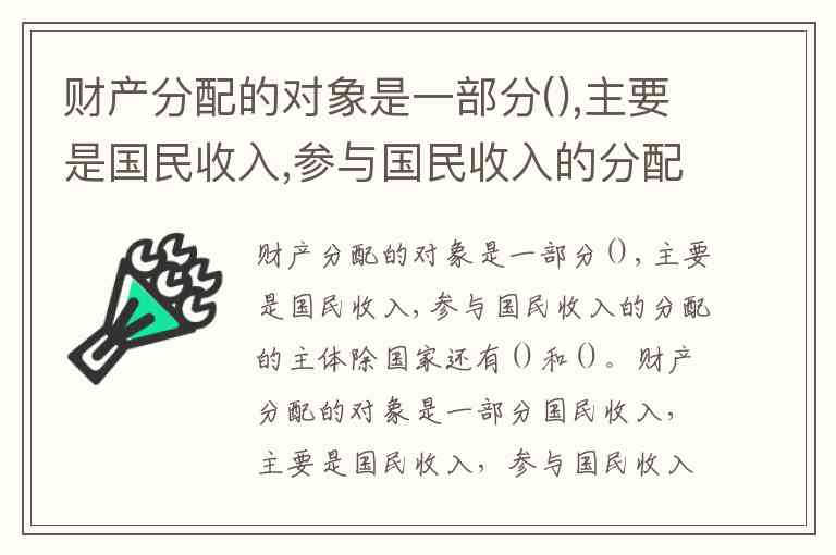 财产分配的对象是一部分国民收入,主要是国民收入,参与国民收入分配的主体除国家还有企业和个人。
