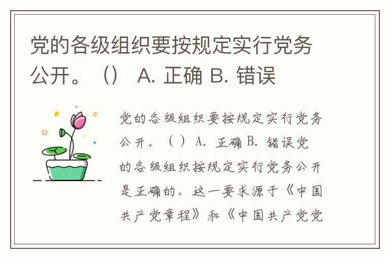 党的各级组织要按规定实行党务公开。() A. 正确 B. 错误