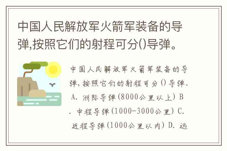 中国人民解放军火箭军装备的导弹,按照它们的射程可分()导弹。 A. 洲际导弹(8000公里以上) B. 中程导弹(1000-3000公里) C. 近程导弹(1000公里以内) D. 远程导弹(3000-8000公里)