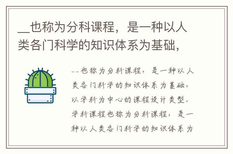__也称为分科课程,是一种以人类各门科学的知识体系为基础,以学科为中心的课程设计类型。