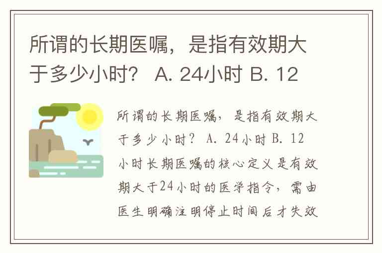 所谓的长期医嘱,是指有效期大于多少小时? A. 24小时 B. 12小时