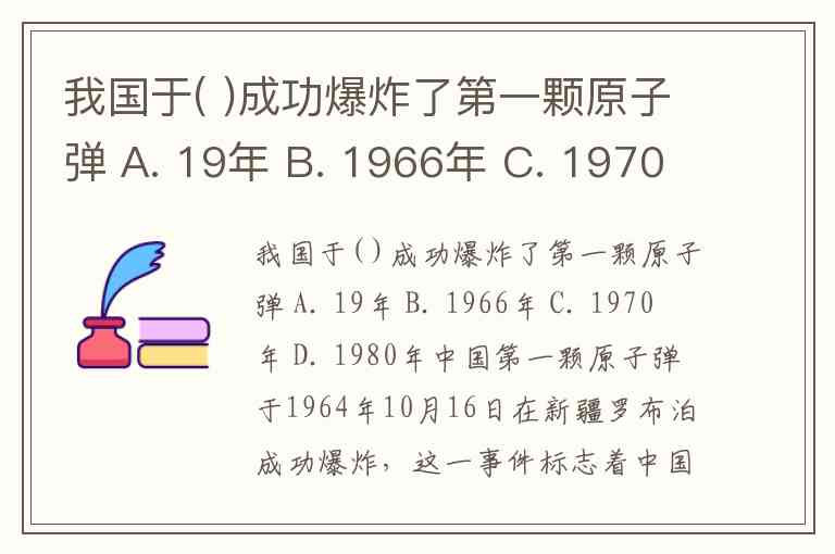我国于( )成功爆炸了第一颗原子弹 A. 19年 B. 1966年 C. 1970年 D. 1980年