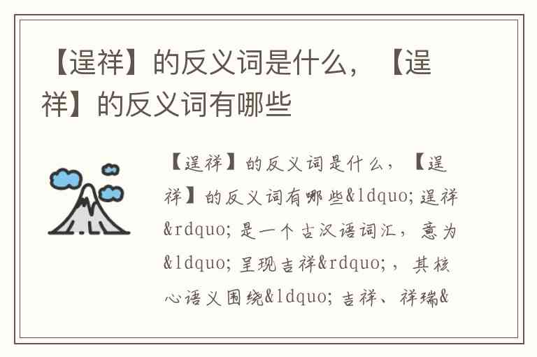 “逞祥”是一个古汉语词汇,意为“呈现吉祥”,其核心语义围绕“吉祥、祥瑞”展开。由于“祥”在传统文化中本身包含吉凶双重含义(吉兆与凶兆),因此“逞祥”的反义词需从“吉祥”的对立面切入。
