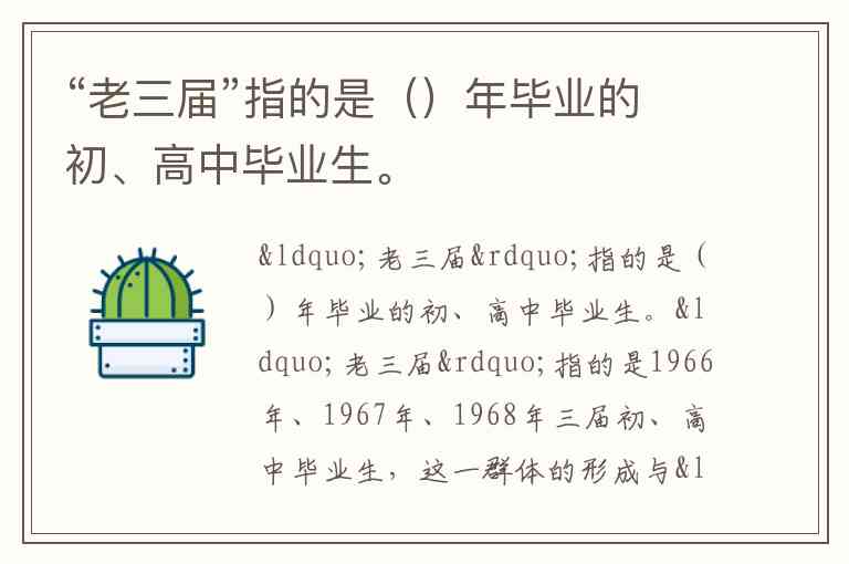 “老三届”指的是()年毕业的初、高中毕业生。
