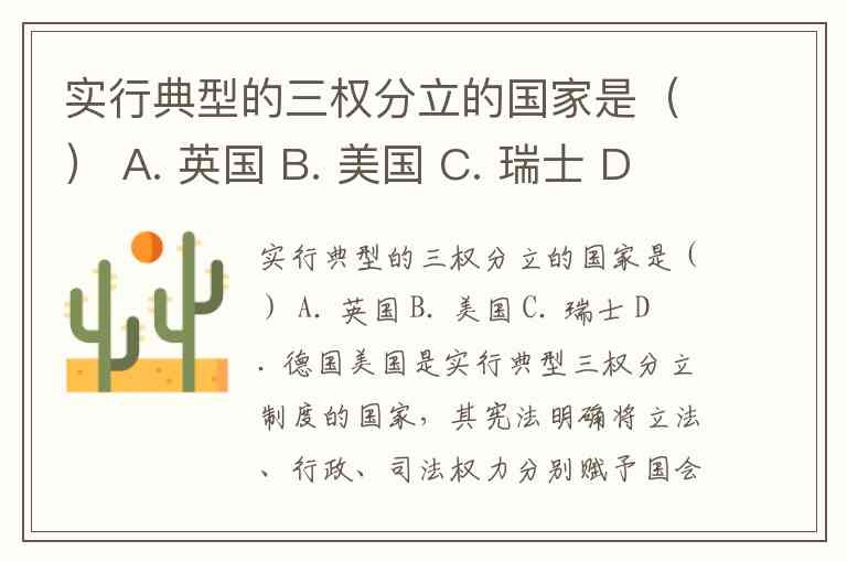 实行典型的三权分立的国家是() A. 英国 B. 美国 C. 瑞士 D. 德国