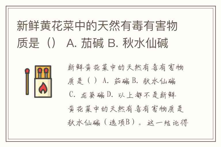 新鲜黄花菜中的天然有毒有害物质是() A. 茄碱 B. 秋水仙碱 C. 龙葵碱 D. 以上都不是