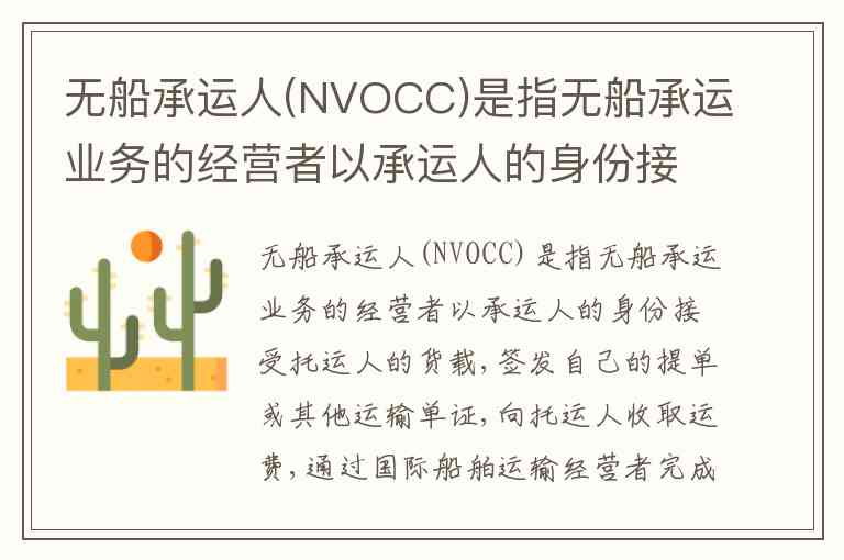 正确。无船承运人(NVOCC)作为海运业务中的重要参与者,其核心特征正是以承运人的名义揽货并签发运输单证(如提单),实际通过与船公司签订运输合同完成货物海运,同时对托运人承担全程运输责任。这一定义准确涵盖了NVOCC的法律地位(承运人身份)、业务模式(不拥有船舶而通过实际承运人运输)和责任范围,符合《国际海运条例》及相关国际公约对NVOCC的界定。是否掌握这一概念,直接关系到理解海运市场中“契约承运人”与“实际承运人”的权责划分,以及货物运输风险的承担主体。