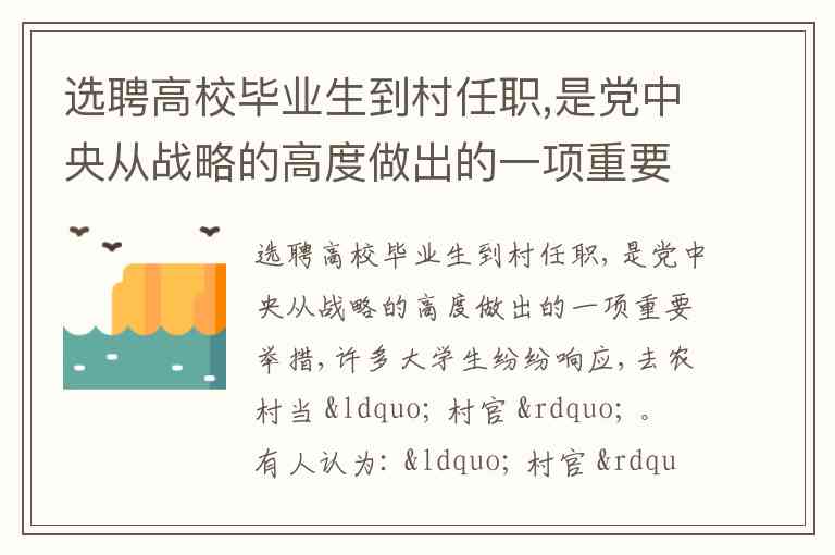 实践中,大学生村官岗位虽由国家选派,但其“村级组织特设岗位”性质明确,属于非公务员身份,需通过公务员考试才能进入体制。这种“编外服务”模式与村“两委”成员的“不脱产、非职业化”特征,共同构成了我国农村基层治理的独特形态——村官作为连接政府政策与村民需求的桥梁,既要协助落实防汛抗旱、医保缴纳等行政事务,又需组织村民决议村内重大事项,其权力来源是村民授权而非行政任命。