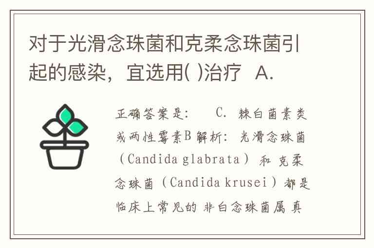 | 光滑念珠菌(C. glabrata) | 棘白菌素类或两性霉素B | 对氟康唑敏感性低 |