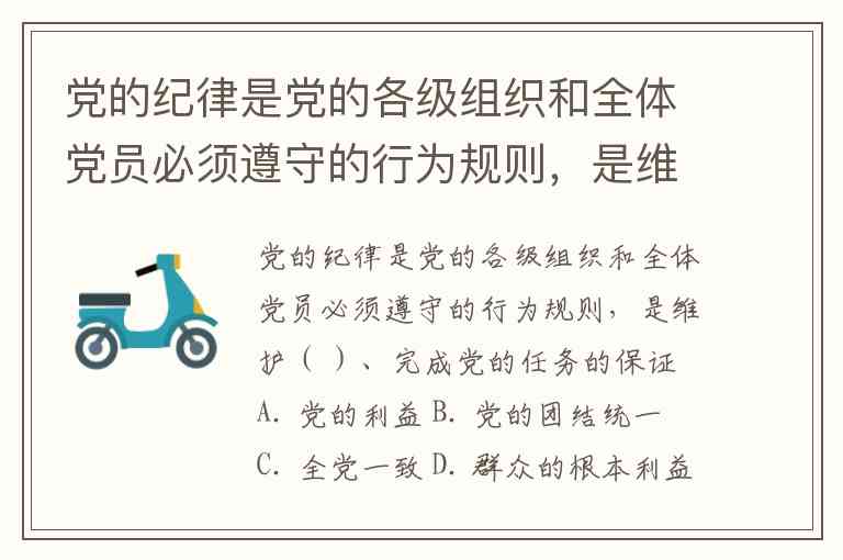 党的纪律是党的各级组织和全体党员必须遵守的行为规则,是维护( )、完成党的任务的保证 A. 党的利益 B. 党的团结统一 C. 全党一致 D. 群众的根本利益