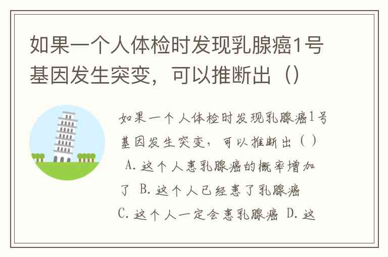 | B. 这个人已经患了乳腺癌 | ❌ 错误。突变只是风险因素,不代表已经发病。 |