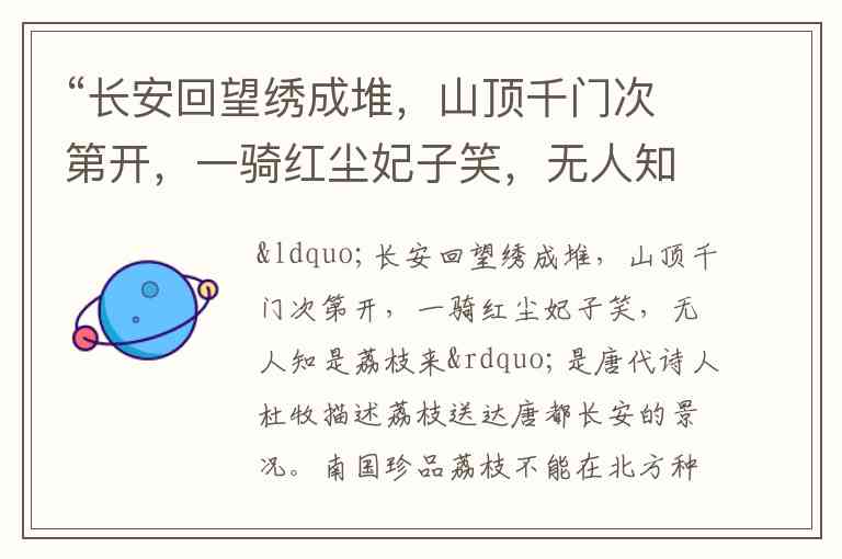 “一骑红尘妃子笑”背后藏着荔枝对气候的严苛挑剔——唐代驿马飞驰千里,恰是因为这种南亚热带果树无法在北方自然生长。温度是限制荔枝分布的决定性因素,其生理特性对热量条件有着近乎苛刻的要求:年均温需稳定在21℃以上才能正常生长,冬季极端低温不能低于-2℃,否则会遭受冻害甚至死亡。长安所在的关中地区年均温仅13-14℃,冬季低温常突破-10℃,远低于荔枝生存底线,这解释了为何杨贵妃只能靠快马传递新鲜果实。