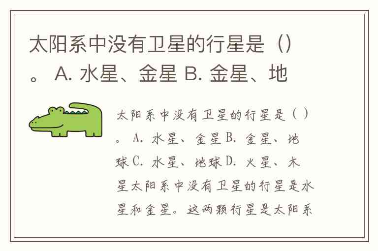 太阳系中没有卫星的行星是()。 A. 水星、金星 B. 金星、地球 C. 水星、地球 D. 火星、木星