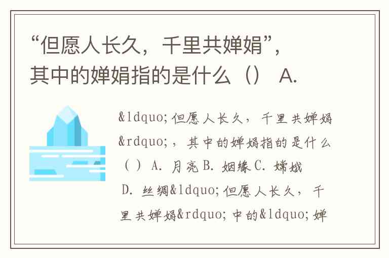 “但愿人长久,千里共婵娟”,其中的婵娟指的是什么() A. 月亮 B. 姻缘 C. 嫦娥 D. 丝绸