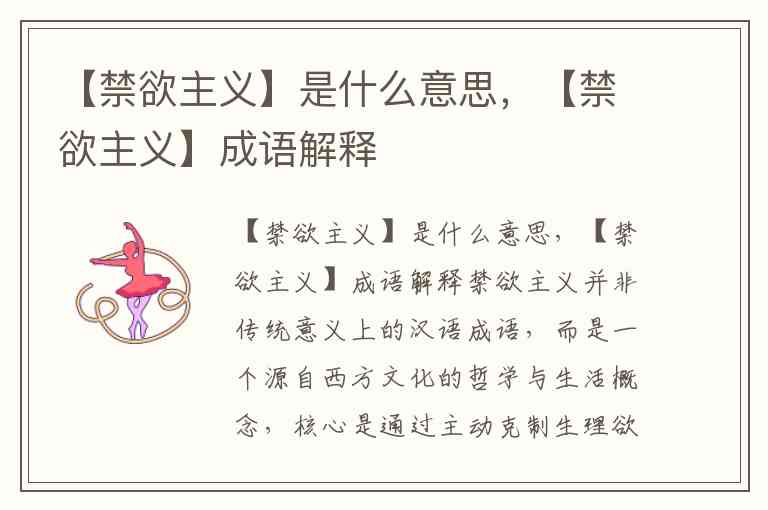 禁欲主义并非传统意义上的汉语成语,而是一个源自西方文化的哲学与生活概念,核心是通过主动克制生理欲望(如性欲、食欲)和物质追求,以实现精神提升或道德完善。其希腊语词源“askēsis”原意为“训练”或“修炼”,最初指运动员为竞技进行的自我约束,后演变为对心灵的磨砺。
