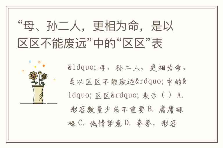 “母、孙二人,更相为命,是以区区不能废远”中的“区区”表示() A. 形容数量少或不重要 B. 庸庸碌碌 C. 诚情挚意 D. 拳拳,形容自己私情