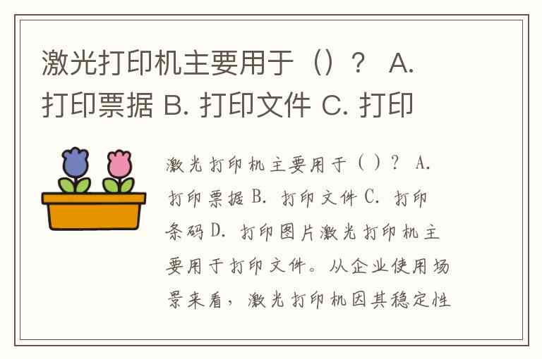 激光打印机主要用于()? A. 打印票据 B. 打印文件 C. 打印条码 D. 打印图片