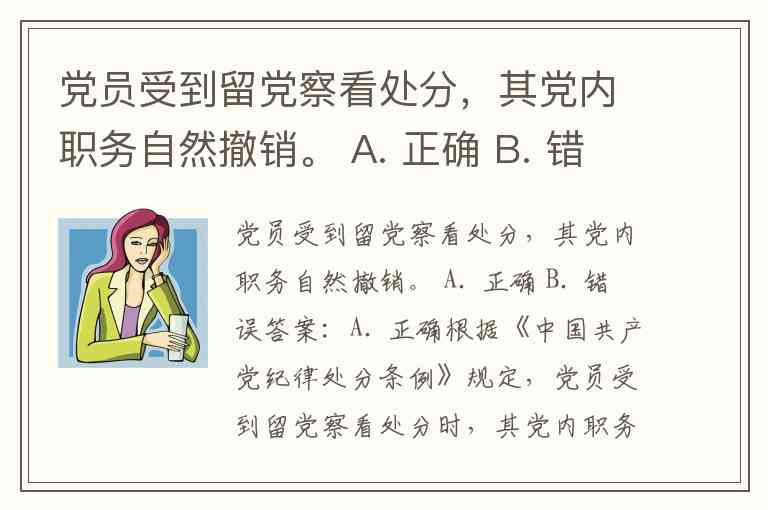 党员受到留党察看处分,其党内职务自然撤销。 A. 正确 B. 错误