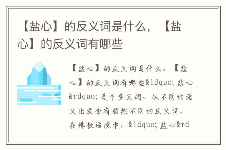 【盐心】的反义词是什么,【盐心】的反义词有哪些