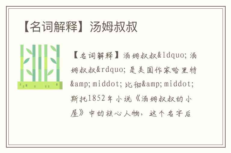 【名词解释】汤姆叔叔