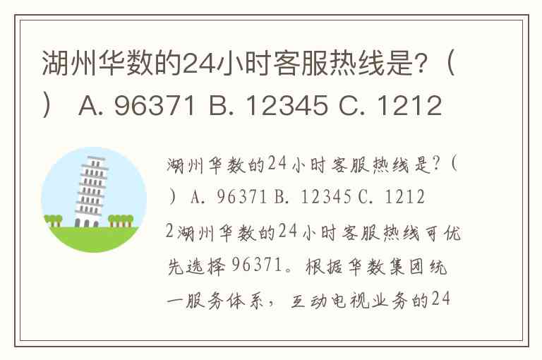 湖州华数的24小时客服热线是?() A. 96371 B. 12345 C. 12122
