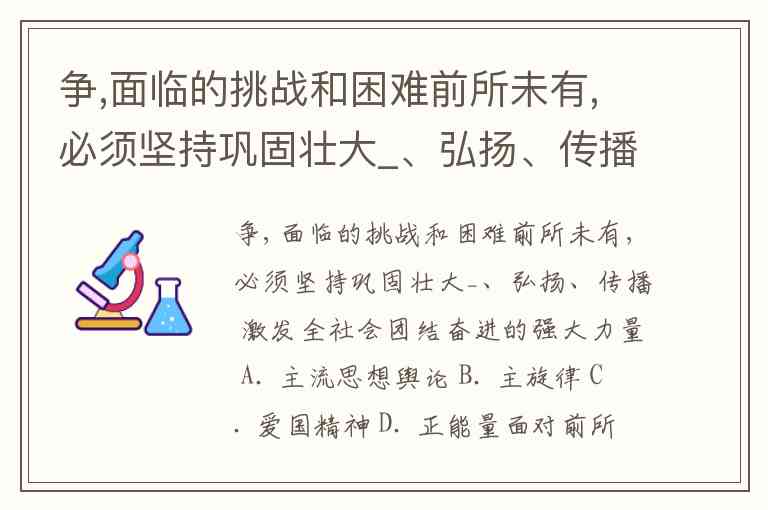 争,面临的挑战和困难前所未有,必须坚持巩固壮大_、弘扬、传播 激发全社会团结奋进的强大力量 A. 主流思想舆论 B. 主旋律 C. 爱国精神 D. 正能量