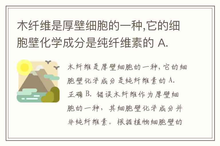 木纤维是厚壁细胞的一种,它的细胞壁化学成分是纯纤维素的 A. 正确 B. 错误