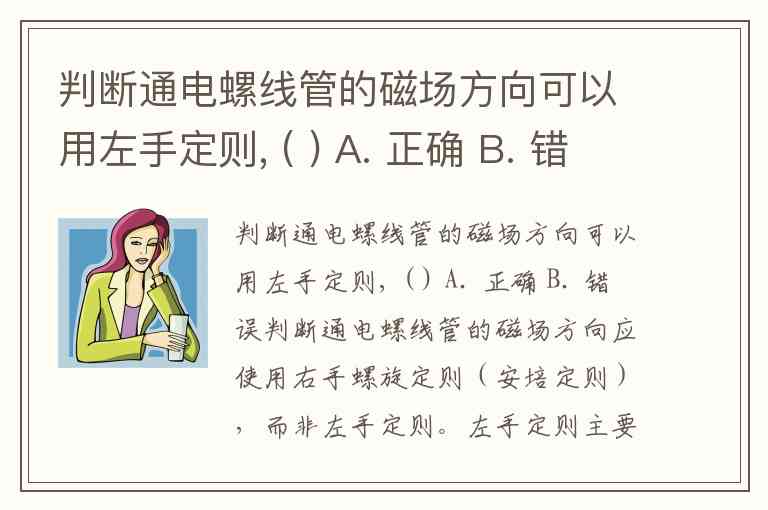 判断通电螺线管的磁场方向可以用左手定则, ( ) A. 正确 B. 错误