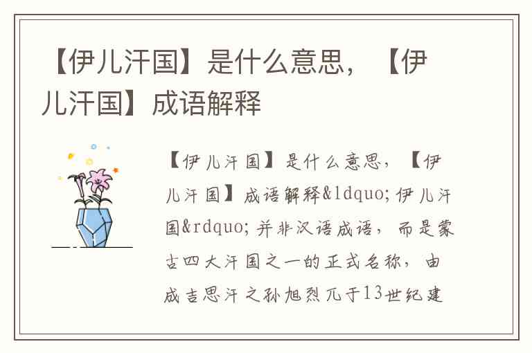 【伊儿汗国】是什么意思,【伊儿汗国】成语解释