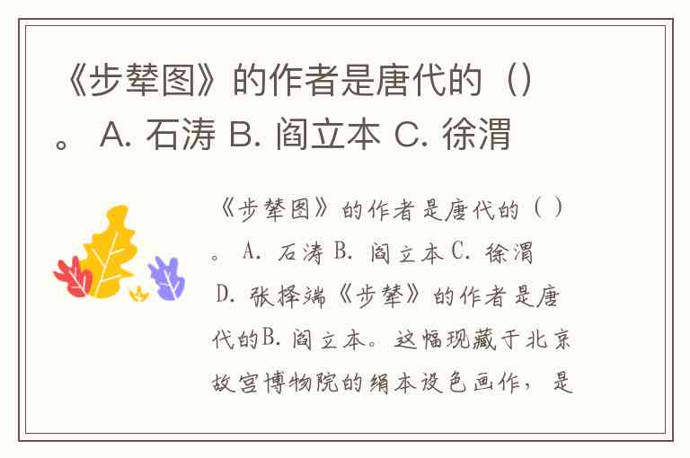 《步辇图》的作者是唐代的()。 A. 石涛 B. 阎立本 C. 徐渭 D. 张择端