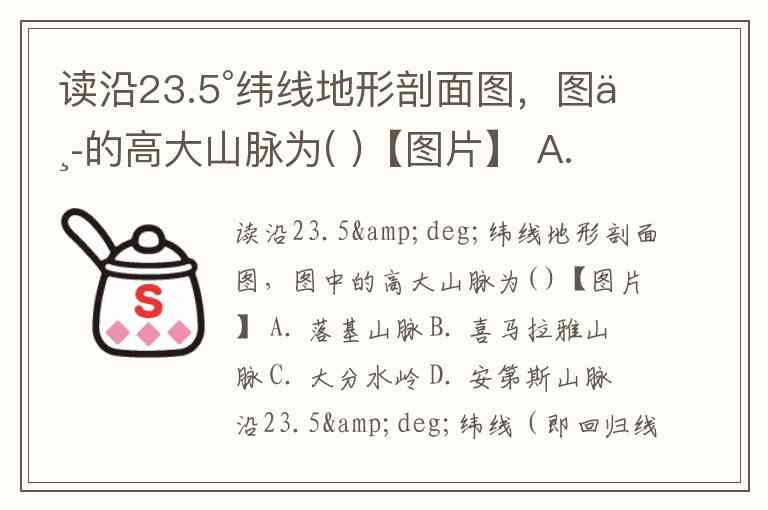 读沿23.5°纬线地形剖面图,图中的高大山脉为( )【图片】 A. 落基山脉 B. 喜马拉雅山脉 C. 大分水岭 D. 安第斯山脉