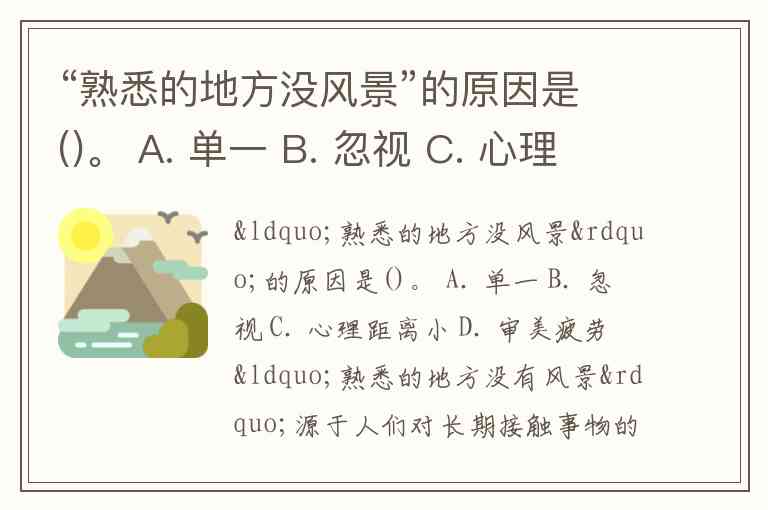 “熟悉的地方没风景”的原因是()。 A. 单一 B. 忽视 C. 心理距离小 D. 审美疲劳