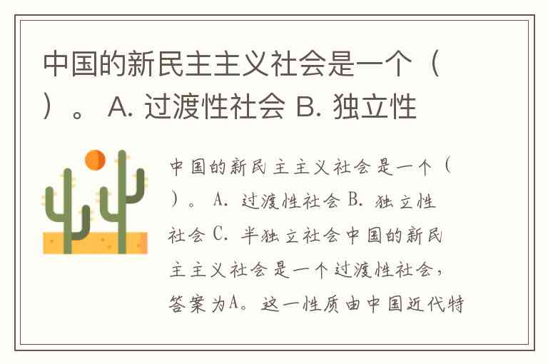 中国的新民主主义社会是一个()。 A. 过渡性社会 B. 独立性社会 C. 半独立社会
