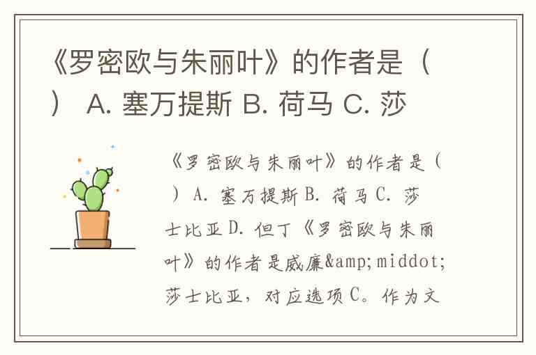 《罗密欧与朱丽叶》的作者是( ) A. 塞万提斯 B. 荷马 C. 莎士比亚 D. 但丁