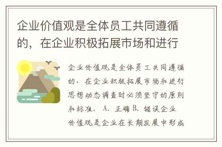 企业价值观是全体员工共同遵循的,在企业积极拓展市场和进行思想动态调查时必须坚守的原则和标准。 A. 正确 B. 错误